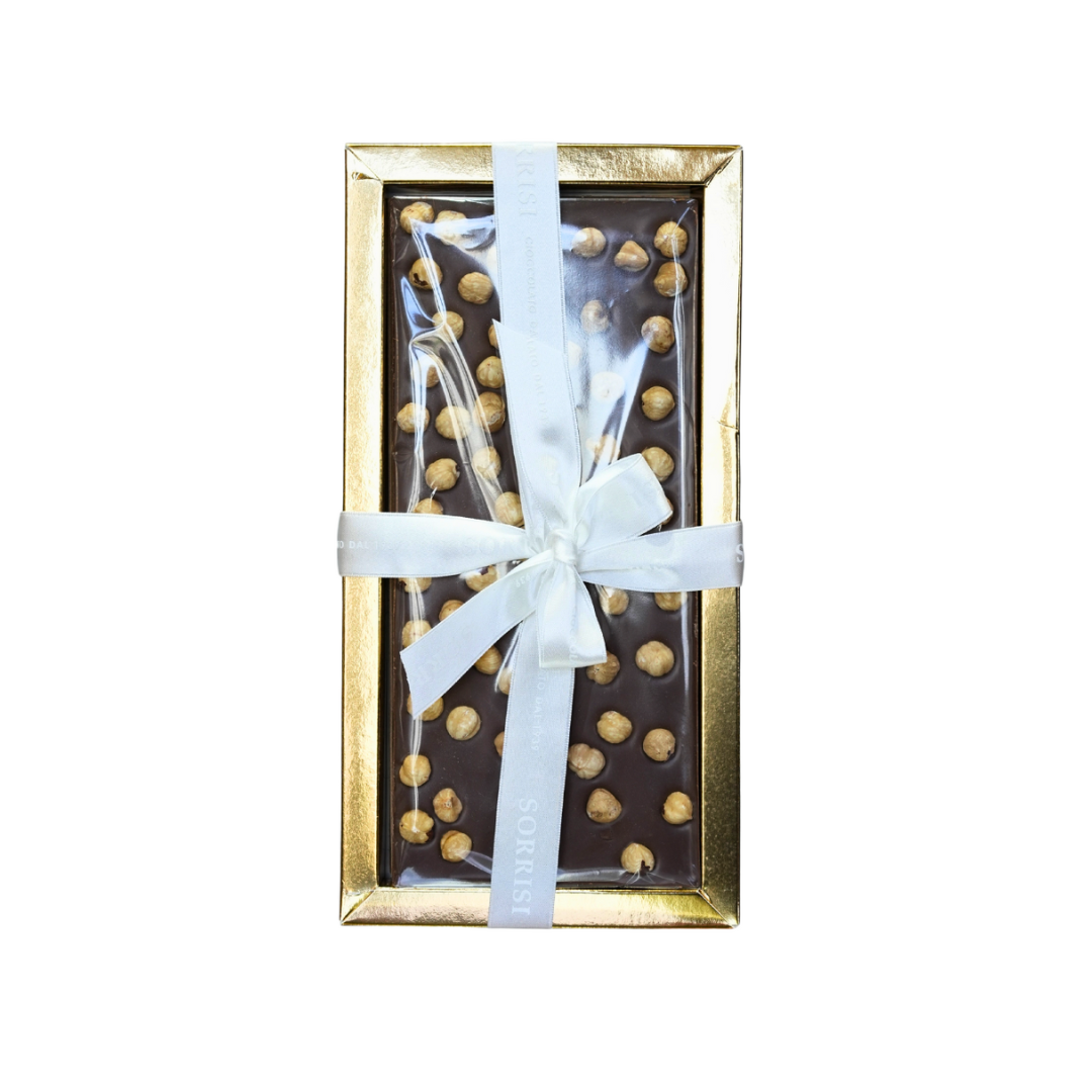 Experimentează gustul autentic al ciocolatei artizanale italiene cu tableta de ciocolată cu lapte și alune întregi de la Boella & Sorrisi. Creată după tradiția ciocolatierilor din Piemonte, această tabletă combină ciocolata fină cu lapte cu alune întregi crocante, oferind o textură echilibrată și un gust intens.